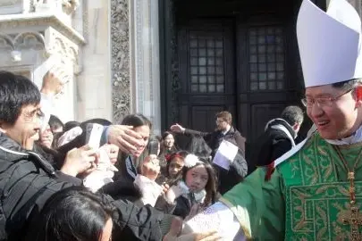 Ha un gusto dell’umano che lo spinge a stare in mezzo alla gente, cantare e fare festa con loro. Lo incontriamo a Milano, dove è stato invitato dal cardinale Angelo Scola per raccontare la sua esperienza pastorale e in Duomo ha fatto il pieno di entusiasmo con oltre 20mila connazionali accorsi da tutto il Nord Italia per partecipare alla sua Messa.