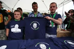 Purtroppo c’è ancora qualcuno che ci casca, come i giovani padani, che a Pontida si sono presentati con una maglietta che raffigura papa Francesco che si tiene la testa tra le mani e una scritta che recita: “Il mio Papa è Benedetto”. Cari giovani padani, prima di fare magliette, studiate, studiate, perché l’ignoranza è brutta e un giorno, quando non sarete più giovani, potreste vergognarvi di quel che avete indossato e venduto a Pontida.