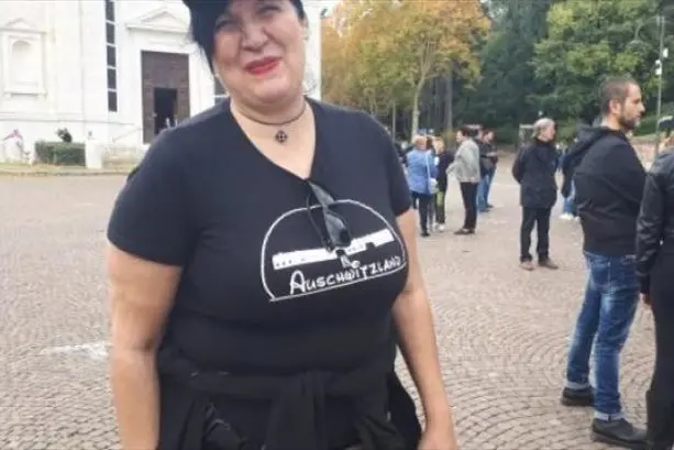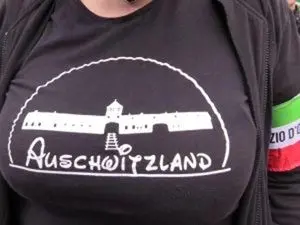 C’è chi sostiene che in uno Stato civile e democratico una che paragona un campo di sterminio a un parco giochi sarebbe stata arrestata per apologia del fascismo e vilipendio (il fascismo è ancora un reato in Italia, Repubblica nata con il sangue della Resistenza), ma c’è anche chi sostiene che in uno Stato civile e democratico una maglietta così non sarebbe nemmeno esistita perché nessun essere pensante ci avrebbe pensato. Ma qui, come si vede dalla foto, la signora fa persino parte del servizio d’ordine dell’adunata nostalgica di camicie nere, fez, labari, bambini vestiti da balilla che fanno il saluto romano e altre carnevalate del genere.