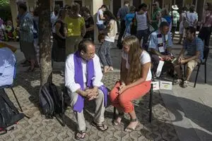 Cinquecentocinque tra sacerdoti e religiosi si alternano a confessare in tutte le lingue: inglese, francese, italiano, arabo, magiaro, coreano, slovacco, cinese... Nessun confessore, a nessuna ora del giorno, resta disoccupato. Qualcuno espone perfino un cartello con l'orario: “Fino alle 18.30”. I penitenti s’inginocchiano a terra. Tanti hanno i volti rigati di lacrime, c’è chi al momento dell’assoluzione scoppia in pianto. «È un fiume di grazia», mormora un frate francescano del Libano.