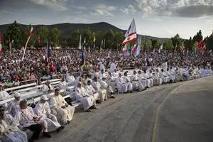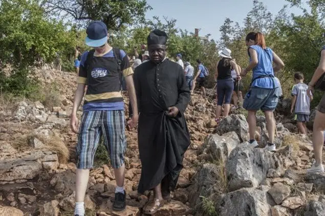 Domenica 2 agosto. È ancora l’alba ma sul Podbordo, il monte tutto speroni rocciosi delle apparizioni, sono già abbarbicati migliaia di pellegrini per l’apparizione mensile a Mirjana, una dei sei veggenti. Ai crocicchi delle strade si prega il Rosario e si mescolano le Ave Maria in croato, italiano, spagnolo, inglese… I ragazzi della Comunità Cenacolo di Madre Elvira, che per prima quassù nel ’91 piantò una tenda per pregare insieme a un manipolo di coraggiosi mentre infuriava la guerra, hanno preparato una sedia per portare in cima un paralitico. Due ragazzoni, braccia tatuate e rosario al collo, si sono arrampicati sui rami di un albero per vedere. Come il capomafia Zaccheo tra la folla di Gerico. I volti, ancora una volta, impediscono ogni classificazione sociologica: ragazzini che potresti tranquillamente incontrare a Ibiza o in qualche discoteca della Riviera romagnola, famiglie con bimbi che sonnecchiano placidi, giovani, anziani.