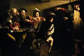 Nella chiesa romana di San Luigi dei Francesi si incontrano tre tele che il Caravaggio tra il 1599 e il 1602 ha dedicato all’apostolo ed evangelista Matteo. In una è al centro la sua vocazione: un Cristo illuminato dalla luce radente di una finestra punta l’indice – citazione del Creatore che sveglia alla vita Adamo nel celebre affresco michelangiolesco della Sistina – su uno stupito Matteo seduto al banco della dogana di Cafarnao. L’istante che ha radicalmente mutato la sua vita è raccontato dall’evangelista nel versetto da noi citato.