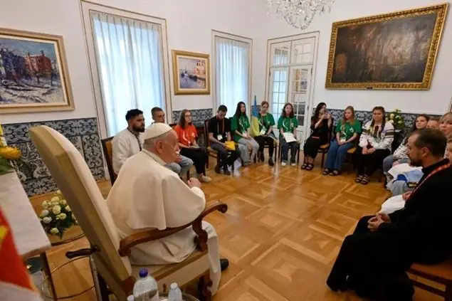 Un gruppo di 15 pellegrini, in maggioranza ragazze visto che gli uomini non possono lasciare il Paese, ha incontrato stamattina papa Francesco. Prima di lasciare la nunziatura per recarsi all’università cattolica di Lisbona, Bergoglio ha accolto in nunziatura questo gruppo accompagnato da Denys Kolada, Consulente per il Dialogo con le organizzazioni religiose presso il Governo ucraino. Dopo aver ascoltato le loro toccanti storie, il Papa ha rivolto ai ragazzi alcune parole, manifestando la sua vicinanza, «dolorosa e di preghiera» e scusandosi per non riuscire a fare di più per fermare la guerra. Con loro anche padre Roman Demush,vice capo dell'Ufficio della pastorale giovanile della Chiesa ucraina greco-cattolica, e la signora Irene che ha portato al Papa pezzi dei missili caduti nella sua parrocchia. AL termine dell’incontro, durato circa 30 minuti, il Papa e i ragazzi hanno recitato insieme il Padre Nostro, con il pensiero rivolto «alla martoriata Ucraina».