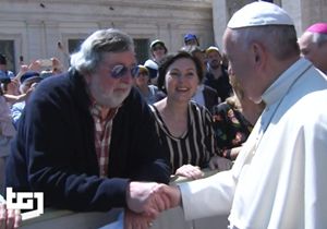 23/04/2018  Il cantautore ha atteso insieme ai fedeli della Diocesi di Bologna l'arrivo di Papa Francesco. La sua canzone Dio è morto nel 1967, fu censurta in Rai, ma venne trasmessa solo da Radio Vaticana.