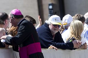 A chi conosce solo superficialmente il cantautore Francesco Guccini può apparire strano vederlo insieme alla Diocesi di Bologna ad attendere in piazza San Pietro l'arrivo del Papa che, poi, passando si è soffermato a scambiare due parole con lui.