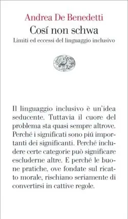 «Parlo di lingua perché è la cosa che conosco meglio, il rischio è che l’adozione dello schwa come alternativa al maschile non marcato diventi una soluzione più esclusiva che inclusiva: rischiamo di escludere dalla comprensibilità della lingua comune tutte le persone che parlano e scrivono senza fare della lingua il loro mestiere. L’italiano con lo schwa ci costringerebbe a rimontare le strutture della nostra lingua daccapo. Non solo, nel momento in cui tu devi stare più attento alle desinenze che usi, finirai per sacrificare i contenuti di quello che dici. Ciascuno di noi parla la propria lingua spontaneamente, senza che nessuno gli abbia insegnato che i maschili finiscono i -o, i femminili in -a. Li ha imparati con il latte e li usa, se deve usare lo schwa deve sacrificare questa spontaneità in nome di un “presuntissimo” diritto, che secondo me non è un diritto, a una desinenza».