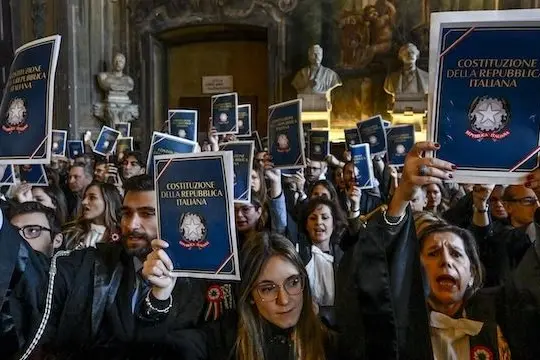 «Toccare l'ordine giudiziario significa toccare uno dei tre poteri dello Stato, modificare l'assetto costituzionale della giurisdizione è un danno per i cittadini nell'interesse dei quali noi cerchiamo di ottenere attenzione». Lo ha affermato Paola Cervo, componente del Comitato direttivo centrale dell'Anm, all'esterno di Castel Capuano, a Napoli, in attesa dell'inaugurazione dell'Anno giudiziario del distretto, dove i magistrati hanno protestato in silenzio contro la riforma in discussione, indossando le toghe nere del lavoro quotidiano e portando in mano la Costituzione e un cartello con le parole di Piero Calamandrei, avvocato, padre costituente, nel 1955 nel salone degli Affreschi della Società Umanitaria a Firenze il 26 gennaio 1955 in occasione dell’inaugurazione di un ciclo di sette conferenze sulla Costituzione italiana organizzato da un gruppo di studenti universitari e medi. L'obiettivo è attirare l'attenzione dei cittadini, far capire che la separazione delle carriere non è un affare corporativo tra avvocati e magistrati, tra politica e magistratura, ma li riguarda come utenti del sistema giustizia.