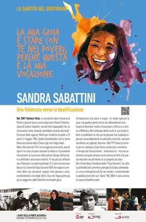 Sandra Sabattini, inoltre, è una delle protagoniste della mostra “Santi della porta accanto. Santità nei giovani”, realizzata dal Centro Culturale San Paolo di Vicenza, con il supporto comunicato del Gruppo editoriale San Paolo, in collaborazione con Azione Cattolica ambrosiana, e curata dal giornalista Gerolamo Fazzini.