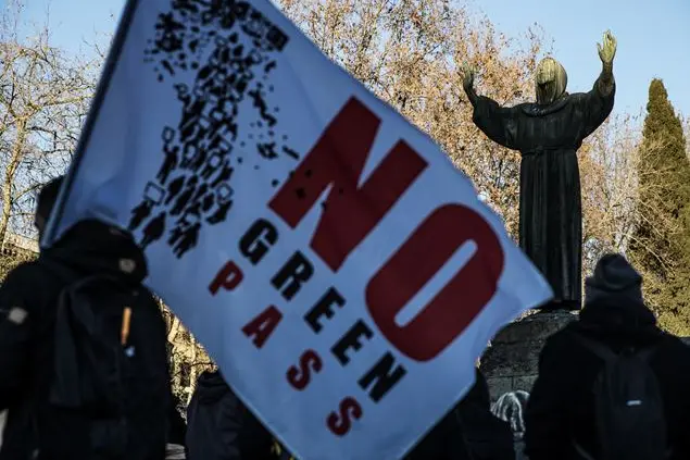 Nella foto Ansa, un momento della manifestazione No Vax in piazza di Porta San Giovanni, Roma, 22 gennaio 2022
