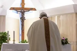 Papa Francesco celebra la Messa a Santa Marta nel giovedì della quarta settimana di Pasqua e all’inizio rivolge di nuovo, dopo quello di qualche giorno fa, il suo pensiero agli artisti: «Ieri ho ricevuto una lettera di un gruppo di artisti: ringraziavano per la preghiera che noi abbiamo fatto per loro. Vorrei chiedere al Signore che li benedica perché gli artisti ci fanno capire cosa è la bellezza e senza il bello il Vangelo non si può capire. Preghiamo un’altra volta per gli artisti».