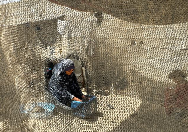(Foto Reuters: una donna palestinese sfollata in una tenda a Rafah)