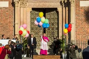 Infine, prima di lasciare la piazza, ha saluto gli adolescenti e i giovani degli oratori venuti a salutarlo con applausi, cori e canti lanciando in aria palloncini colorati. «Dio», ha detto, «benedice gli inizi. Più che di me che sono avanzato negli anni, ha bisogno di voi: date inizio al futuro di Milano». Il cardinale Scola nel consegnare al suo successore il pastorale di San Carlo dice: «Non ti dirò, come i nostri predecessori, che questo pastorale ti sarà pesante, perché la tua lunga esperienza ti consente di saperlo di già. Voglio invece formularti un augurio: che il tuo cammino sotto lo sguardo di Colui la cui «gloria riempie la terra» sia spedito e carico di frutti».