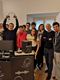 I ragazzi del Centro Lollo con il conduttore Nicola Savino (51 anni) e don Domenico, alla postazione della webradio, un innovativo progetto per la riabilitazione.
