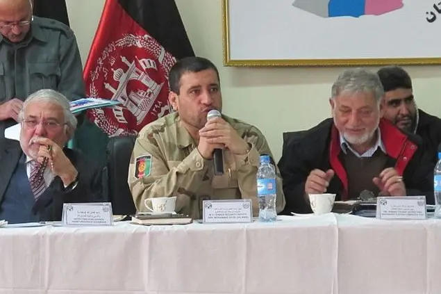Il viceministro per la sicurezza del ministero degli Interni, il generale Mohammad Ayoub Salangi (nella foto di Romina Gobbo), ascolta i responsabili del Centro di coordinamento delle forze di sicurezza afghane, che spiegano le misure approntate, nell'area del Regional Command West, in vista delle elezioni presidenziali del 5 aprile 2014 (saranno eletti anche i rappresentanti delle province), le terze dalla caduta del regime dei talebani. Un passaggio cruciale per la democrazia, hanno sottolineato tutti gli intervenuti: i governatori delle province, gli helder (capi tribù), i rappresentanti di esercito, polizia e intelligence. Non va dimenticato che alle elezioni del 2009 gli osservatori dell'Unione Europea denunciarono la presenza di un milione e mezzo di voti fraudolenti e aprirono inchieste sui brogli.