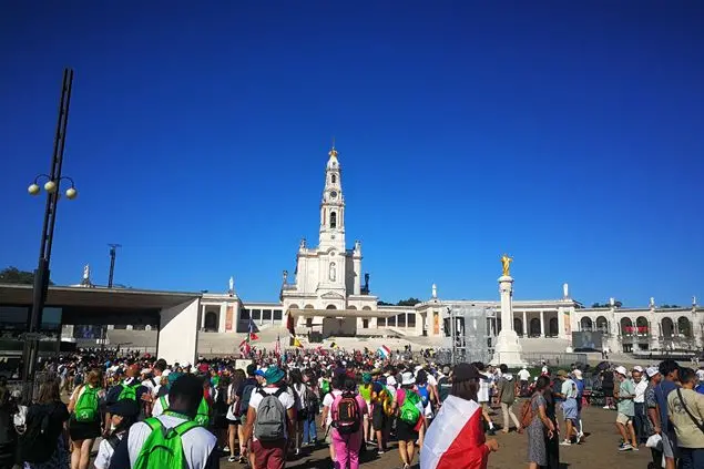 Ed eccoci nell’enorme sagrato di Fatima. Ci sono passati praticamente tutti i gruppi dei partecipanti a questa Gmg, prima di arrivare a Lisbona, come tappa preparatoria o già insediatisi nella capitale portoghese, tanto da poter essere considerata a pieno titolo la seconda città e il cuore spirituale dell’evento. È tutto un tripudio di bandiere delle varie nazioni, dal Messico all’Uruguay, dalla Francia all’Italia, dalla Turchia al Canada.