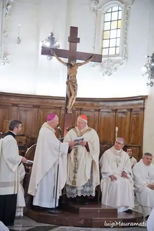 È così, ha concluso Bassetti, «che riconosciamo don Tonino, nel coro che inneggia all’Agnello: lo vediamo in piedi, desto e vigile; non si accontenta di essere nella beatitudine del Risorto, ma vuole portarci tutti: attento da un lato alla voce di ciascuno di noi, dall’altro alle meraviglie di Dio. Possa egli spronarci e affiancarci nel cammino incontro a Cristo, nostra Pasqua. Ci sostenga l’intercessione della Vergine Maria, con le bellissime preghiere che don Tonino ci ha donato, in questo mese che la Chiesa dedica a Lei. “Non abbiate paura: la Vergine santa ci dice ancora una volta che il rosso di sera non si è scolorito”».