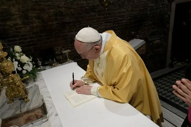 La scelta di Loreto per firmare la lettera ai giovani nel giorno della festa dell’Annunciazione del Signore non è casuale. Papa Francesco sul sagrato del Santuario gremito di fedeli spiega i motivi che l’hanno spinto a venire qui: «La Santa Casa è la casa dei giovani, perché qui la Vergine Maria, la giovane piena di grazia, continua a parlare alle nuove generazioni, accompagnando ciascuno nella ricerca della propria vocazione. Questo è un luogo privilegiato dove i giovani possono venire alla ricerca della propria vocazione, alla scuola di Maria!». Poi, subito dopo la Messa celebrata nella Santa Casa (l’ultima volta di un Papa che celebrò qui risale a Pio IX nel 1862), la firma, sul piccolo altare, dell’esortazione post-sinodale Christus vivit (Cristo vive) che sarà divulgata il 2 aprile prossimo (e tra due settimane distribuita con Famiglia Cristiana e le altre testate del gruppo): «Ho voluto firmare qui l'Esortazione apostolica frutto del Sinodo dedicato ai giovani perché nell'evento dell'Annunciazione appare la dinamica della vocazione espressa nei tre momenti che hanno scandito il Sinodo: ascolto della Parola-progetto di Dio; discernimento; decisione».