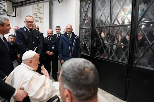 Meno di mezz'ora, ma non voleva mancare. Papa Francesco, appena ha smesso di piovere, alle 14.55, e prima che ricominciasse a gocciolare, alle 15,25, si è messo in macchina e ha raggiunto il carcere di Regina Coeli, a due passi dal Vaticano per incontrare i carcerati. Nella giornata del giovedì santo, come ha fatto da sempre, anche quando era arcivescovo a Bueno Aires, Bergoglio visita i detenuti ponendosi la domanda, come spesso ha spiegato, «Perché loro e non io?». Ad attenderlo, nella rotonda dell'istituto penale romano dove era già stato nel 2018, una settantina di detenuti. Il coro «Francesco Francesco», alternato con il grido «Libertà libertà», è proseguito anche dopo l'uscita della macchina del Papa. Francesco ha parlato per pochi minuti, senza naselli per l'ossigeno, accolto dal Direttore, Claudia Clementi, e dal personale del penitenziario.