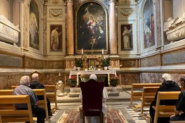 Il Papa si è recato a sorpresa, questo pomeriggio, a pregare al centro di Roma sulla tomba di Santa Monica, la madre di Sant’Agostino, che da lei, ha avuto a dire Francesco, ricevette «il seme dell’inquietudine».