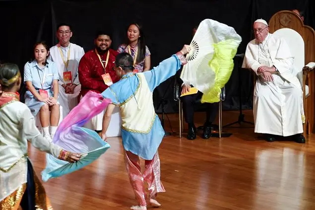 Il coraggio di andare avanti, di uscire dalle zone «confortabili» per costruire, insieme, il futuro. Papa Francesco parla ai giovani di Singapore, dopo aver ascoltato le testimonianze di tre ragazzie, un indù, una sikh e una cattolica, e li sprona al dialogo. Bisogna osare perché «un giovane che sceglie di essere sempre, nella sua vita, in un mondo confortabile è un giovane che ingrassa, ma non ingrassa la pancia, ingrassa la mente. Per questo dico ai giovani: rischiate, uscite. Non abbiate paura. La paura è un atteggiamento dittatoriale che ti fa paralizzare». Il Pontefice definisce i ragazzi «coraggiosi e sfacciati» e vuole parlare con loro a braccio sottolineando tre parole che lo hanno colpito: essere «critici da salotto», cercare le «zone di comfort» e l’uso delle «tecnologie». La nuova generazione deve camminare «verso la verità», dice il Papa. I giovani devono «essere creativi e stare attenti a non cadere nei critici di salotto, quelli che fanno solo bla bla bla». La critica va bene, ma solo quando è costruttiva, «perché se è distruttiva non si va avanti». E se «è vero che tante volte i giovani sbagliano», bisogna considerare che questo è normale, ma «l'importante è rendersi conto dello sbaglio». Non si deve avere paura di cadere, non rimanere paralizzati, ma «occorre rischiare». E, per le nuove tecnologie, cercare di non essere schiavi dei cellulari per non diventare «giovani dispersi». Infine, dopo averli esortati a lottare contro il bullismo «che è sempre aggressione», chiede loro di impegnarsi nel dialogo interreligioso. «Tutte le religioni sono un cammino per arrivare a Dio. Dio è Dio per tutti. E noi siamo tutti figli». Bisogna ricordare questo e dialogare perché, ha ricordato, «ogni dittatura nella storia, la prima cosa che fa è tagliare il dialogo».