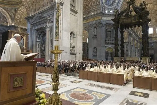 Bergoglio invita ad avere il «coraggio di lasciare» perché «Dio purifica, Dio semplifica, spesso fa crescere togliendo, non aggiungendo, come faremmo noi. La vera fede purifica dagli attaccamenti. Per seguire il Signore bisogna camminare spediti e per camminare spediti bisogna alleggerirsi, anche se costa. Come Chiesa, non siamo chiamati a compromessi aziendali, ma a slanci evangelici. E nel purificarci, nel riformarci», avverte Francesco, «dobbiamo evitare il gattopardismo, cioè il fingere di cambiare qualcosa perché in realtà non cambi nulla. Questo succede ad esempio quando, per cercare di stare al passo coi tempi, si trucca un po’ la superficie delle cose, ma è solo maquillage per sembrare giovani. Il Signore non vuole aggiustamenti cosmetici, vuole la conversione del cuore, che passa attraverso la rinuncia. Uscire da sé è la riforma fondamentale». Il Papa sottolinea come i «primi cristiani» sono stati in grado di giungere «al coraggio della rinuncia partendo dall’umiltà dell’ascolto. Si sono esercitati nel disinteresse di sé: vediamo che ciascuno lascia parlare l’altro ed è disponibile a cambiare le proprie convinzioni. Sa ascoltare solo chi lascia che la voce dell’altro entri veramente in lui. E quando cresce l’interesse per gli altri, aumenta il disinteresse per sé».