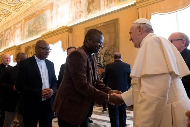 Il Pontefice ringrazia i missionari africani che insieme a suore e laici formano una “gioiosa famiglia”, per l’impegno nel grande lavoro di evangelizzazione, specialmente tra le popolazioni rurali più lontane, là dove la comunità cristiana è ancora fragile o inesistente; per la loro attenzione ai migranti; per la sfida costante a raggiungere tutte quelle periferie “che hanno bisogno dell’annuncio del Vangelo”. L’evangelizzazione, ribadisce il Pontefice, è sempre fatta da una comunità che agisce «mediante opere e gesti nella vita quotidiana degli altri, accorcia le distanze, si abbassa fino all’umiliazione se è necessario, e assume la vita umana, toccando la carne sofferente di Cristo nel popolo».