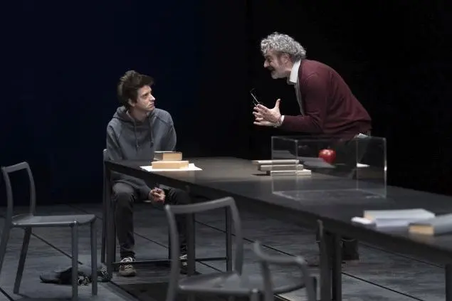Raramente si scrive di scuola per caso e infatti anche il drammaturgo spagnolo Juan Mayorga, autore di Il ragazzo dell’ultimo banco, ha trascorsi da insegnante di matematica e fisica. Con la matematica la pièce, diretta da Jacopo Gassmann, alla sua prima regia al Piccolo Teatro di Milano e recitata da Danilo Negrelli nei panni del prof, c’entra poco: i numeri ci sono ma ai margini, un pretesto secondario scritto su un vetro come su una lavagna, forse un omaggio agli studi dell’autore. L’opera teatrale è tutta in un gioco di specchi attorno al tema della scrittura e alla sua etica. C’è dentro più filosofia che numeri ed è una vicenda un poco ossessiva - e in parte resa tale dalla struttura particolare del Piccolo teatro studio di Milano, dove tutto si consuma per necessità attorno al centro dell’anfiteatro - tutta imperniata sulla relazione e sul punto di vista: relazione educativa, relazione tra docente e allievo, relazione tra lo scrittore e i soggetti del racconto, relazione tra l’alunno e la famiglia del compagno di classe, relazione tra il prof e la sua donna, artista incompresa (anche dal compagno).