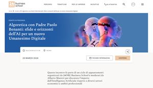 Padre Paolo Benanti, tra i massimi esperti di etica delle tecnologie, parlerà del nuovo Umanesimo Digitale in occasione dell’incontro organizzato lunedì 25 marzo da 24ORE Business School di Milano che da trent’anni opera nel mercato dell’education e della formazione manageriale con corsi di specializzazione e Master in tutte le aree più richieste dal mondo del lavoro e per tutte le funzioni aziendali.