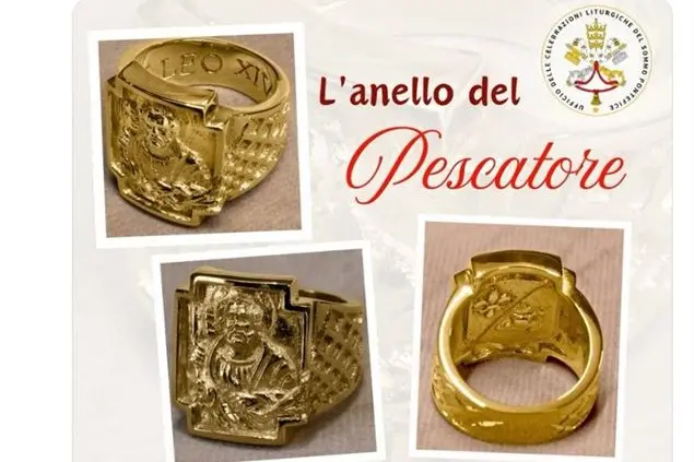 All'esterno l'immagine di san Pietro con le chiavi e con la rete, all'interno l'incisione "Leo XIV" e lo stemma del nuovo Pontefice: il giglio nella parte destra in alto e, a sinistra in basso della diagonale il cuore trafitto poggiato sul libro, simbolo degli agostiniani. L’Anello del Pescatore sarà consegnato a Papa Leone XIV durante la celebrazione per l’inizio del Ministero Petrino. Al termine della lettura del Vangelo si avvicineranno a lui tre cardinali dei tre ordini (vescovi, presbiteri e diaconi) e di continenti diversi. Un cardinale dell'ordine dei diaconi gli impone il Pallio, uno dell'ordine dei presbiteri invoca, con una speciale preghiera, la presenza e l'assistenza del Signore sul Papa, il terzo pronuncia, pure lui, un'orazione, invocando Cristo, ''pastore e vescovo delle nostre anime'', che ha edificato la Chiesa sulla roccia di Pietro, e dallo stesso Pietro è stato riconosciuto ''Figlio del Dio vivente'', perché sia lui a dare al nuovo Pontefice l'Anello-sigillo del Pescatore. Infine gli consegna l'Anello del Pescatore. Questo momento si conclude pregando lo Spirito Santo perché arricchisca il nuovo Pontefice di forza e mitezza nel conservare i discepoli di Cristo nell'unità della comunione, poi il Papa benedice l'assemblea con il Libro dei Vangeli, mentre si acclama in greco: ''Ad multos annos!'' Dopo il simbolico rito dell' "obbedienza" prestata al Papa da dodici rappresentanti di tutte le categorie del popolo di Dio, provenienti da varie parti del mondo, la celebrazione prosegue con l'omelia del Pontefice. Poi viene cantato il Credo, al quale segue la preghiera dei fedeli con cinque invocazioni, in portoghese, francese, arabo, polacco e cinese. Si prega il Signore per la Chiesa, ovunque diffusa sulla terra, per il Romano Pontefice, che inizia il suo ministero, per quanti detengono le responsabilità di governo, per coloro che si trovano nella sofferenza e nel disagio, per la stessa assemblea.