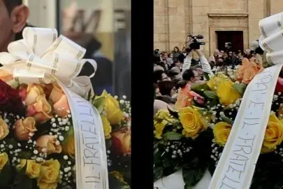 Il padre Daniele, sguardo perso nel vuoto, sorregge la bara. Sopra c’è un cuscino di fiori con la scritta: “Il papà e il fratellino”. Il cuscino della madre, un cuore composto da rose bianche e rosse con la scritta “La mamma Veronica”, resta fuori dalla chiesa, sul sagrato, in mezzo alla distesa di peluche, fiori e bigliettini portati da paesani e sconosciuti.