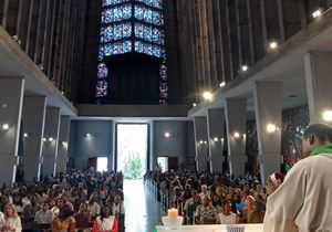 Visitare una cattedrale, come suggerisce qualsiasi architetto, è un’esperienza da vivere quando è piena di vita, quando si riempie di fedeli. Alle messe domenicali, la chiesa si riempie di circa 600 migranti, perlopiù africani subsahariani, accompagnati da qualche europeo. La celebrazione è una vera festa: tra canti, battimani, turbanti colorati e preghiere, la corale polifonica degli studenti universitari risuona potente. La processione delle offerte si svolge con gioia, portando ananas, banane, latte, vino e frutta esotica in un ritmo che mescola lingue e tradizioni: francese, latino, swahili, yoruba. Il "Padre nostro" spesso viene cantato con i melismi dell’arabo, segno di una Chiesa che, in terra d’Islam, vuole essere "sacramento dell’incontro".