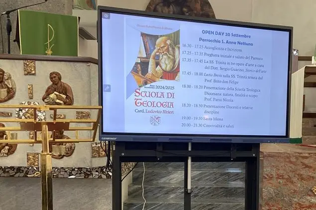 La teologia va in parrocchia. A Nettuno, nella chiesa di Sant’Anna, e ad Ariccia, in quella dedicata a Santa Maria Assunta in cielo, per volere del vescovo di Albano, monsignor Vincenzo Viva, ripartono i corsi del primo anno mentre proseguono quelli del secondo della Scuola di formazione teologica intitolata al cardinale Ludovico Altieri, già vescovo della diocesi dal 1860 al 1867. «Questa scuola», spiega Nicola Parisi (nella foto al tavolo), che ne è direttore, «nasce da un contesto sinodale. Nel percorso che la Cei ci ha chiesto di fare era venuta l’idea di una formazione per i laici. Una esigenza che veniva dal basso per aiutare la sete di conoscenza teologica che hanno i fedeli». Dunque una sorta di «sussidio alle periferie, legato molto al territorio. Dopo una sorta di experimentum ad Anzio, a livello vicariale, vedendo la grande richiesta, abbiamo voluto estendere l’esperienza». Da una settantina di iscritti si è passati a 170. «Un boom di iscrizioni che ci ha spronati a migliorare ancora di più», aggiunge Parisi, che vanta studi a Napoli, Gerusalemme e Roma dove, all’Università San Tommaso D’Aquino, ha conseguito il dottorato in Teologia biblica. «Con le sedi di Nettuno e Ariccia riusciamo a raggiungere sia la zona mare che quella collinare». I 22 docenti, tra i quali anche il parroco di Sant’Anna, don Luca De Donatis (nella foto in piedi), che insegnerà Antropologia teologica e virtù, don Felipe Brito, al quale è affidato il corso di Cristologia e teologia trinitaria, Laura Paladino, collaboratrice di Famiglia cristiana, che affronterà le lezioni di Vangeli sinottici e Atti degli Apostoli, si alterneranno nei quattro moduli (costituiti da 14 lezioni da 90 minuti) che prenderanno il via il 4 ottobre a Nettuno e il 5 ad Ariccia. Nella sede di Nettuno l’appuntamento è per il venerdì dalle 18 alle 21.10, mentre nell’altra sede il sabato dalle 15.30 alle 18.40. «La formazione teologica», spiega il parroco di Santa Maria Assunta in cielo, don Antonio Salimbeni, «è un vero e proprio apostolato, un impegno, sia per chi offre le lezioni che per chi le segue». Per non essere cristiani superficiali e per legare sempre di più, come sottolinea anche don De Donatis, «fede e vita».