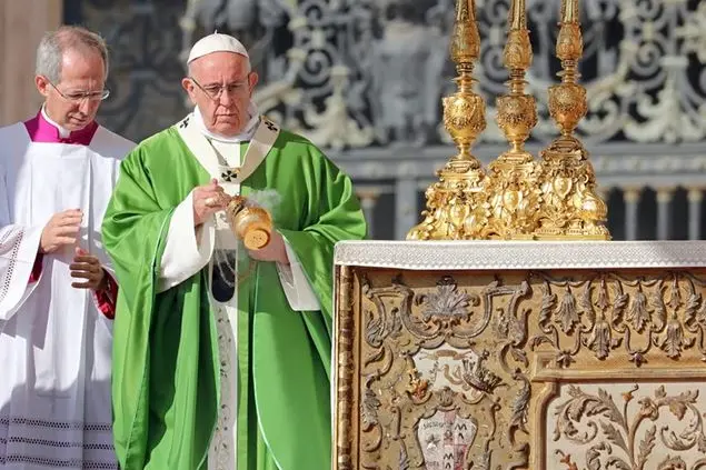 «Noi vi esortiamo ad ampliare i vostri cuori secondo le dimensioni del mondo, ad intendere l’appello dei vostri fratelli, e a mettere arditamente le vostre giovani energie al loro servizio. Lottate contro ogni egoismo. Rifiutate di dare libero corso agli istinti della violenza e dell’odio, che generano le guerre e il loro triste corteo di miserie. Siate generosi, puri, rispettosi, sinceri. E costruite nell’entusiasmo un mondo migliore di quello attuale!». Papa Francesco conclude la sua omelia nella messa di apertura del XV Sinodo ordinario dei vescovi citando le parole di Paolo VI ai giovani al termine del Concilio Vaticano II. Il Papa che sarà canonizzato il prossimo 14 ottobre e che ha voluto fortemente l’istituzione del Sinodo viene richiamato da Bergoglio per ricordare che è soprattutto per i giovani che la Chiesa, con il Concilio, ha «acceso una luce». Francesco chiede, che proprio sull’esmepio del Vaticano II il metodo della prossima assise sia quello dell’ascolto, e chiede che «ciascuno non cerchi l’interesse proprio, ma anche quello degli altri. E nel contempo» che ciascuno punti «più in alto chiedendo che con umiltà consideriamo gli altri superiori a noi stessi. Con questo spirito cercheremo di metterci in ascolto gli uni degli altri per discernere insieme quello che il Signore sta chiedendo alla sua Chiesa. E questo esige da noi che stiamo attenti e badiamo bene che non prevalga la logica dell’autopreservazione e dell’autoreferenzialità, che finisce per far diventare importante ciò che è secondario e secondario ciò che è importante. L’amore per il Vangelo e per il popolo che ci è stato affidato ci chiede di allargare lo sguardo e non perdere di vista la missione alla quale ci chiama per puntare a un bene più grande che gioverà a tutti noi. Senza questo atteggiamento, tutti i nostri sforzi saranno vani». Si commuove papa Francesco quando annuncia che «oggi, per la prima volta, sono qui con noi anche due confratelli Vescovi dalla Cina Continentale. Diamo loro il nostro caloroso benvenuto: dell’intero Episcopato con il Successore di Pietro è ancora più visibile grazie alla loro presenza». E un applauso sale dai fedeli presenti in piazza san Pietro alla volta di monsignor Giuseppe Guo Jincai, vescovo di Chengde (provincia di Hebei) e di monsignor Giovanni Battista Yang Xiaoting, vescovo di Yan'an (provincia di Shaanxi).