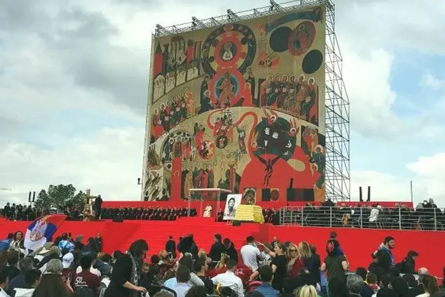 Un grande “retablo” che rappresenta il Giudizio universale, opera di Kiko e del suo gruppo di artisti, domina il palco. La chitarra e le parole del fondatore del Cammino neocatecumenale riempiono l’attesa dell’arrivo del Papa. «La solitudine è il grande dramma dell’Europa e del mondo», dice Kiko. «Tutti quelli che siete qui avete una comunità alle spalle, ma ci sono persone che sono completamente sole. E se a 50 anni con un cane e una bottiglia di whisky si può sopportare, a 90 no. Quando sei più anziano se cadi in casa non c’è nessuno che ti viene a rialzare. E tanti vengono trovati morti dopo giorni e neppure puzzano perché non mangiano. Da noi gli anziani sono in comunità e, se non possono andare in comunità, la comunità fa loro da casa».