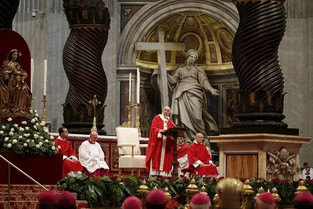 «Una Chiesa in preghiera è una Chiesa ‘in piedi’, solida, in cammino!», e «un cristiano che prega è un cristiano protetto, custodito e sostenuto, ma soprattutto non è solo». A ricordarlo è il papa, nell’omelia della Messa presieduta questa mattina nella Basilica Vaticana in occasione della solennità dei Santi Apostoli Pietro e Paolo, nel corso della quale ha benedetto i palli destinati ai 46 nuovi arcivescovi metropoliti. Commentando il racconto della seconda lettura sulla preghiera della comunità cristiana e sulla liberazione di Pietro dal carcere, Francesco ha precisato che «le catacombe non erano luoghi per sfuggire alle persecuzioni ma erano, innanzitutto, luoghi di preghiera», e si è soffermato sulla figura dell’angelo inviato dal Signore all’Apostolo. «Quante volte - ha chiesto - il Signore ha esaudito la nostra preghiera inviandoci un Angelo?». «Quanti angeli egli mette sul nostro cammino! Ma noi, presi dalla paura o dall’incredulità, oppure dall’euforia, li lasciamo fuori dalla porta». L’invito, infine, alla perseveranza nella preghiera: «Nessuna comunità cristiana può andare avanti senza il sostegno della preghiera perseverante». Nella preghiera «il credente esprime la sua fede, la sua fiducia, e Dio esprime la sua vicinanza, anche attraverso il dono degli Angeli, i suoi messaggeri».