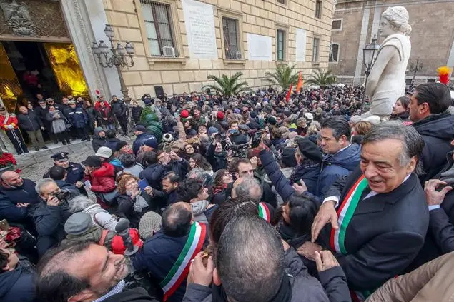 Sono iniziati ad arrivare alle 11 in piazza Pretoria, davanti al portone del Comune dove alla stessa ora l’arcivescovo di Palermo, Corrado Lorefice, celebrava la tradizionale messa di inizio anno. E sono rimasti lì per quasi due ore nonostante la pioggia e il freddo. Una manifestazione nata spontaneamente sui social dopo le dichiarazioni del sindaco Leoluca Orlando e la decisione di sospendere l’applicazione di una parte del decreto sicurezza in attesa di un approfondimento giuridico. Dentro Palazzo delle Aquile, tanti rappresentanti istituzionali e politici per la celebrazione eucaristica. Fuori, la piazza affollata da giovani, gente comune, famiglie, intellettuali, esponenti del terzo settore e numerose associazioni. La critica al decreto è univoca. Dentro viene riletta la preghiera scritta per il Natale dall’arcivescovo Lorefice e recitata in tutte le chiese della città: Gesù come “il primo profugo dell’era cristiana”. Il passaggio più forte: “Che non ci accada di rimanere in silenzio dinnanzi ai dis-umani decreti che aggravano la sofferenza di chi è vessato dalla povertà e dalla guerra” (qui il testo integrale).
