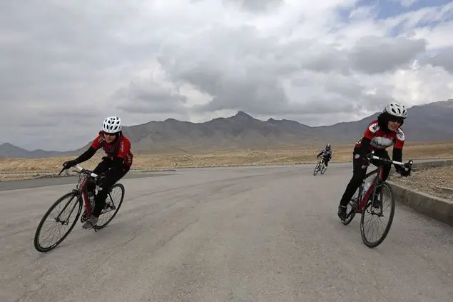 (Nella foto Reuters: due cicliste della squadra nazionale femminile afghana durante un allenamento)