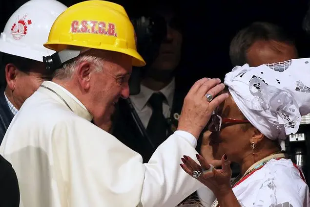In secondo luogo, dice il Papa: «Voi siete seminatori di cambiamento. Qui in Bolivia ho sentito una frase che mi piace molto: “processo di cambiamento”. Il cambiamento concepito non come qualcosa che un giorno arriverà perché si è imposta questa o quella scelta politica o perché si è instaurata questa o quella struttura sociale. Sappiamo dolorosamente che un cambiamento di strutture che non sia accompagnato da una sincera conversione degli atteggiamenti e del cuore finisce alla lunga o alla corta per burocratizzarsi, corrompersi e soccombere. Per questo mi piace molto l’immagine del processo, dove la passione per il seminare, per l’irrigare con calma ciò che gli altri vedranno fiorire sostituisce l’ansia di occupare tutti gli spazi di potere disponibili e vedere risultati immediati. La scelta è generare processi e non occupare posti. Ognuno di noi non è che parte di un tutto complesso e variegato che interagisce nel tempo: gente che lotta per un significato, per uno scopo, per vivere con dignità, per “vivere bene”. Voi, da parte dei movimenti popolari, assumete i compiti di sempre, motivati dall’amore fraterno che si ribella contro l’ingiustizia sociale. Quando guardiamo il volto di quelli che soffrono, il volto del contadino minacciato, del lavoratore escluso, dell’indigeno oppresso, della famiglia senza casa, del migrante perseguitato, del giovane disoccupato, del bambino sfruttato, della madre che ha perso il figlio in una sparatoria perché il quartiere è stato preso dal traffico di droga, del padre che ha perso la figlia perché è stata sottoposta alla schiavitù; quando ricordiamo quei “volti e nomi” ci si stringono le viscere di fronte a tanto dolore e ci commuoviamo... Perché “abbiamo visto e udito” non la fredda statistica, ma le ferite dell’umanità sofferente, le nostre ferite, la nostra carne. Questo è molto diverso dalla teorizzazione astratta o dall’indignazione elegante. Questo ci tocca, ci commuove e cerchiamo l’altro per muoverci insieme. Questa emozione fatta azione comunitaria non si comprende unicamente con la ragione: ha un “più” di senso che solo la gente capisce e che dà la propria particolare mistica ai veri movimenti popolari. Voi vivete ogni giorno, impregnati, nell’intrico della tempesta umana. Mi avete parlato delle vostre cause, mi avete reso partecipe delle vostre lotte, e vi ringrazio. Voi, cari fratelli, lavorate molte volte nella dimensione piccola, vicina, nella realtà ingiusta che vi è imposta, eppure non vi rassegnate, opponendo una resistenza attiva al sistema idolatrico che esclude, degrada e uccide. Vi ho visto lavorare instancabilmente per la terra e l’agricoltura contadina, per i vostri territori e comunità, per la dignità dell’economia popolare, per l’integrazione urbana delle vostre borgate e dei vostri insediamenti, per l’autocostruzione di abitazioni e lo sviluppo di infrastrutture di quartiere, e in tante attività comunitarie che tendono alla riaffermazione di qualcosa di così fondamentale e innegabilmente necessario come il diritto alle “tre T”: terra, casa e lavoro. Questo attaccamento al quartiere, alla terra, al territorio, all’occupazione, al sindacato, questo riconoscersi nel volto dell’altro, questa vicinanza del giorno per giorno, con le sue miserie e i suoi eroismi quotidiani, è ciò che permette di esercitare il mandato dell’amore non partendo da idee o concetti, bensì partendo dal genuino incontro tra persone, perché non si amano né i concetti né le idee; si amano le persone. Il darsi, l’autentico darsi viene dall’amare uomini e donne, bambini e anziani e le comunità... volti e nomi che riempiono il cuore. Da quei semi di speranza piantati pazientemente nelle periferie dimenticate del pianeta, da quei germogli di tenerezza che lottano per sopravvivere nel buio dell’esclusione, cresceranno alberi grandi, sorgeranno boschi fitti di speranza per ossigenare questo mondo. Vedo con gioia che lavorate nella dimensione di prossimità, prendendovi cura dei germogli; ma, allo stesso tempo, con una prospettiva più ampia, proteggendo il bosco. Lavorate in una prospettiva che non affronta solo la realtà settoriale che ciascuno di voi rappresenta e nella quale è felicemente radicato, ma cercate anche di risolvere alla radice i problemi generali di povertà, disuguaglianza ed esclusione. Mi congratulo con voi per questo. E’ indispensabile che, insieme alla rivendicazione dei vostri legittimi diritti, i popoli e le loro organizzazioni sociali costruiscano un’alternativa umana alla globalizzazione escludente. Voi siete seminatori del cambiamento. Che Dio vi conceda coraggio, gioia, perseveranza e passione per continuare la semina! Siate certi che prima o poi vedremo i frutti.