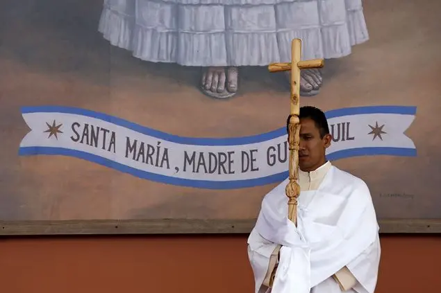 La catechesi dei simboli, che papa Francesco usa sapientemente, passa anche attraverso l'uso di un pastorale di legno. Bergoglio, sia per la Messa di Guayaquil che per quella al parco del Bicentenario a Quito, ha usato una ferula (cioè il pastorale pontificio che termina con la croce invece che con la punta ricurva) opera di un rifugiato somalo sbarcato a Lampedusa. O meglio ne è una copia esatta visto che l'originale, che papa Francesco ha usato anche nella Domenica delle Palme del 2014 e nel viaggio in Terra Santa, si è danneggiato. La ricostruzione di Tv2000 spiega che, su richiesta dello stesso Bergoglio, la copia è stata fatta con il legno d'ulivo di Betlemme.