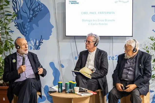Non abbiamo più tempo. È urgente un cambio di paradigma del nostro stile di vita. Fraternità e ascolto sono i binari su cui dobbiamo avviarci prima della catastrofe. Non hanno usato giri di parole per raccontare la situazione attuale Enzo Bianchi e Carlin Petrini, sollecitati dal direttore di Famiglia Cristiana, Stefano Stimamiglio, domenica nel tardo pomeriggio nella cornice di Terra Madre, Salone del Gusto a Torino. Il confronto, promosso in collaborazione con il Festival dell’Accoglienza, tra «un uomo di fede» e «un uomo di fede nell’umano», come li ha presentati il direttore, era incentrato su «Cibo, Pace, Fraternità». Tre dimensioni che apparentemente potrebbero sembrare lontane, ma che mai come nel tempo attuale sono fortemente collegate, come hanno rimarcato i relatori.
