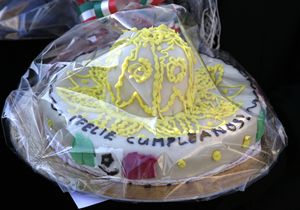 Teddy Reno, l'89enne marito di Rita Pavone, canta una canzone composta apposta per papa Francesco. Foto Ansa. In alto e in copertina: la torta-sombrero regalata a Bergoglio per il suo 79° compleanno dalla giornalista messicana Valentina Alazraki. Foto: Reuters.