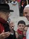 Ha cominciato a festeggiarli con 24 ore d'anticipo, in Piazza San Pietro, tra la gente. Papa Francesco compie oggi 79 anni.  Messaggi d'auguri gli stanno arrivando da ogni parte del mondo. Ma già ieri c'è chi s'è stretto a lui con gioia. E con creatività. Al termine dell'udienza generale, Valentina Alazraki, una giornalista messicana di Televisa, ha regalato al Papa una torta di compleanno a forma di sombrero. Durante i saluti fatti al Santo Padre dai cardinali e dai vescovi  presenti in piazza, sono risuonate note di tango, un genere musicale amato da Bergoglio. Molti fedeli poi (in tutto ce n'erano circa 15 mila, secondo i dati diffusi dalla Prefettura della Casa pontificia) hanno intonato il popolarissimo "Tanti auguri a te". Teddy Reno, infine, l'ottantanovenne marito di Rita Pavone, ha cantato in spagnolo una canzone scritta apposta per il Papa. Finita l'esecuzione del brano, si è inginocchiato: Bergoglio l'ha aiutato  a rialzarsi, salutando con calore lui e i componenti del gruppo che l'accompagnavano.