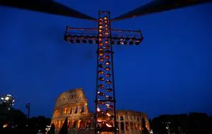 La croce passa di mano in mano durante la via Crucis al Colosseo. Ci sono le famiglie, ci sono le ragazze vittime della tratta, ci sono le suore che le aiutano nel riscatto, ci sono laici e religiosi che, come il Cireneo, sono impegnati ad alleviare il peso delle nuove croci di oggi. Ci sono, oltre al cardinal vicario Angelo De Donatis, suor Venicia Meurer e Suor Lilly Nanat, suore Pallottine che arrivano dal Brasile e dall’India, ci sono i barellieri e i disabili dell’Unitalso, c’è la nigeriana Patricia Ogiefa con sua figlia Cristina, suor Rita Giaretta ed Ezekiel Joy, da anni impegnate a fianco delle ragazze con Casa Rut, a Caserta, ci sono suor Mihaela Elizabeta Balauca, che segue Ponte Galeria e Maria Leonor Jardon, che lavora con una unità di strada, c'è la giornalista Lucia Capuzzi. Sanno bene quali sono le croci che oggi gravano sui nuovi schiavi. Croci che Papa Francesco, al termine della via crucis, ricorda una a una chiamandole per nome: la croce delle persone sole, di quelle affamate, dei migranti, dei piccoli feriti nella propria innocenza, degli anziani… E indica la speranza della risurrezione.