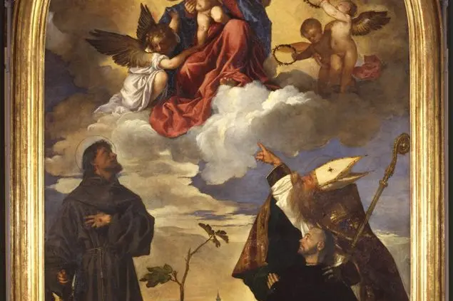 Grazie a un importante progetto allestitivo curato dall’architetto Corrado Anselmi, i visitatori potranno straordinariamente osservare non solo il capolavoro di Tiziano ma anche il retro della tavola, dove sono presenti alcuni schizzi a matita, in parte ombreggiati a pennello, realizzati dallo stesso Tiziano e raffiguranti varie teste, una delle quali potrebbe essere il bozzetto per il Bambino in una prima stesura del dipinto. La possibilità di ammirare anche il retro della grande pala d’altare (olio su tavola, 312 x 215 cm) consentirà di scoprire come venivano realizzate nel Cinquecento queste opere che tanta importanza e diffusione hanno avuto nella storia dell'arte del nostro Paese.