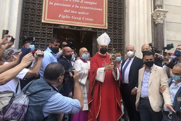 L’annuncio tanto atteso è arrivato dall’altare. «Il sangue si è sciolto». Emozionato il vescovo di Napoli, Domenico Battaglia, ha pronunciato per la prima volta queste parole. «È bello ritrovarsi attorno a questo altare con questo segno bellissimo», dice poi, ancora commosso, rivolgendo subito l’ampolla verso lo sguardo del cardinale Crescenzio Sepe, che lo ha preceduto.