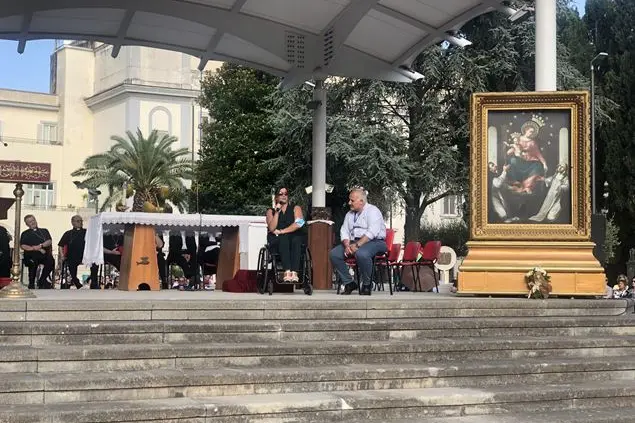 Dall’altare di Pompei Giusi, seduta sulla sua carrozzina da sette anni, si commuove raccontando che non avrebbe mai rinunciato alla vita di sua figlia in cambio delle sue gambe. «Al terzo mese di gravidanza cominciai ad avere dei problemi alla schiena a causa di una caduta, la diagnosi fu rallentata dalla gravidanza ma dagli esami che si potevano fare, un medico mi disse che avrei dovuto abortire per essere operata subito dopo altrimenti avrei rischiato la paralisi». E quello di Giusi non è stato mai un "sì" pronunciato da sola. Ma un Si di tutta la famiglia che attorno a lei ha imparato a fare sistema. «Le gambe purtroppo sono rimaste ferme ma a causa di una operazione venuta fuori da una diagnosi sbagliata» spiega Giusi accompagnata da Nino di Maio presidente del Forum delle Famiglie «ma anche se non ho più le mie due gambe ne ho 10. Quelle di mio marito che non mi ha mai lasciata sola, quelle dei miei suoceri che hanno cresciuto la mia terza figlia e quelle dei miei genitori che mi hanno aiutata con i due figli più grandi». Come lei hanno detto Si alla vita anche Roberta e Alfredo che hanno deciso di essere una famiglia della carità accogliendo nelle strutture delle opere di Pompei bambini abbandonati o disabili, Tommaso e Pina che hanno adottato Matteo un bambino che era stato abbandonato in ospedale perché nato senza arti e Ilenia e Antonio, i genitori di Miriam che sul palco è arrivata con una maglietta gialla come la luce del sole che a Pompei ha fatto sentire tutto il suo calore.