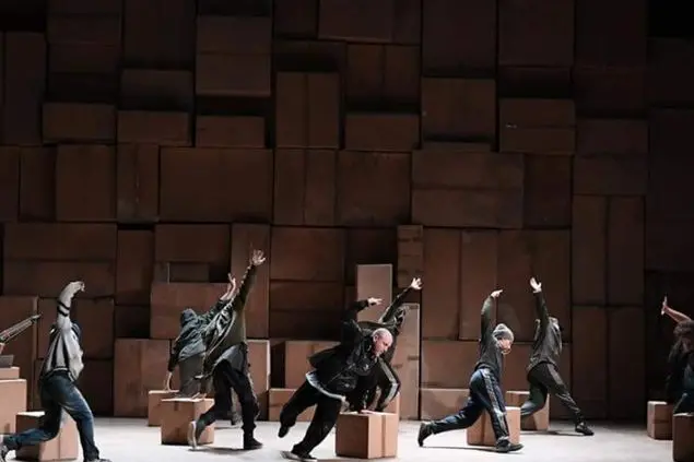 Il regista canadese (che fece il suo debutto come stagista a Spoleto 40 anni fa) inventa un fondale di scatoloni che, in pochi attimi, si spostano per portare in vista una camera da letto, un pub o la cella di un carcere. Semplice e geniale. Anche i bravissimi musicisti francesi dell’ensemble Les Arts Florissants, nell’angolo sinistro del palcoscenico, leggono le note dai tablet appoggiati agli scatoloni. La loro tenuta è da bassifondi urbani: felpe, tatuaggi, pantaloni strappati, tute, occhiali a specchio, berretti da baseball con la visiera spostata sulla nuca.
