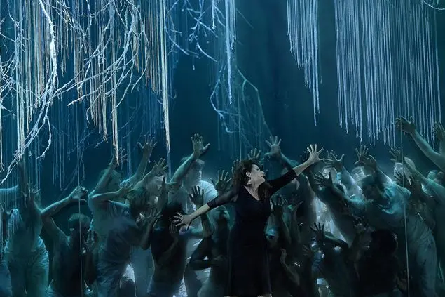 Alcina è una maga onnipotente. Le basta un gesto imperioso del braccio per ottenere ciò che vuole. Entra in scena e con un gesto fa riaccendere le luci in sala, già abbassate per l’inizio dello spettacolo. Nulla teme Alcina, che seduce i cavalieri sulla sua isola incantata e poi li trasforma in animali, rocce e piante. Tre ore dopo questo inizio folgorante, invece Alcina ha perso tutto. La maga si trova senza poteri e senza l’amante Ruggiero, invecchiata e abbruttita, sconfitta. “Oh noi perdute!”, cantano insieme Alcina e la fata sorella Morgana. Sono le loro ultime parole, prima del coro che celebra il lieto fine: “Dopo tante amare pene/già proviamo conforto all’alma;/ogni mal si cangia in bene, ed alfine trionfa amor”.
