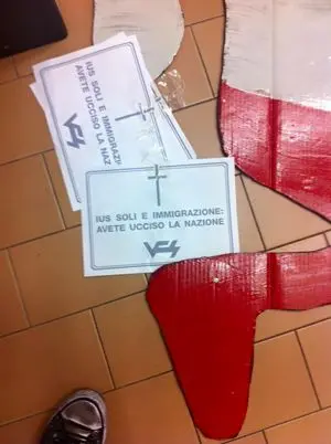 Non sono davvero un bel segnale le ultime minacce e intimidazioni xenofobe nei confronti della Caritas. Quelli rivendicati dall’associazione di estrema destra “Veneto Fronte Skinheads” sono stati veri e propri blitz notturni contro dieci sedi di altrettante Caritas diocesane del nord Italia, oltreché di alcune sedi del PD. Che è accaduto? La notte del 24 novembre scorso, sono state lasciate dai militanti del movimento filofascista veneto sagome di cartone tricolori e manifesti contro l’introduzione dello “ius soli” e l’azione di solidarietà e accoglienza dei migranti che svolge da sempre la Caritas. Le azioni si sono svolte a Como, Brescia, Crema, Lodi, Reggio Emilia, Piacenza, Trento, Mestre, Vicenza e Treviso.