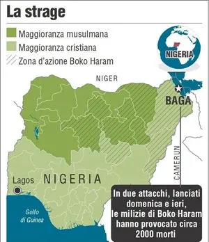 Il gruppo estremista islamico Boko Haram (nome che significa “l'educazione occidentale è peccato”) avrebbe preso il controllo del 70% della regione e conquistato anche una base militare. L'offensiva contro Baqa era stata lanciata nel primo fine settimana di gennaio, con un bilancio di almeno 100 morti accertati. Ma un secondo attacco è partito l’8 gennaio: secondo le testimonianze raccolte dalla Bbc 16 villaggi della zona sarebbero stati rasi al suolo.